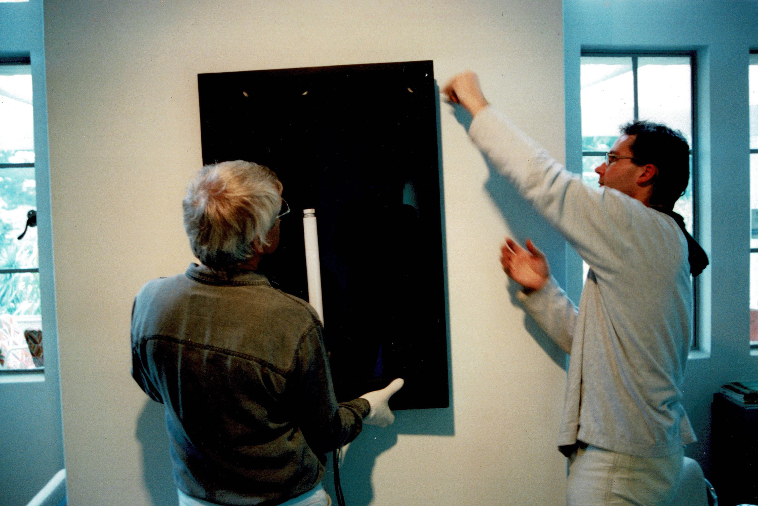 Rob Gardiner and Richard Thompson installing the Post Black series at CFCA (1992)