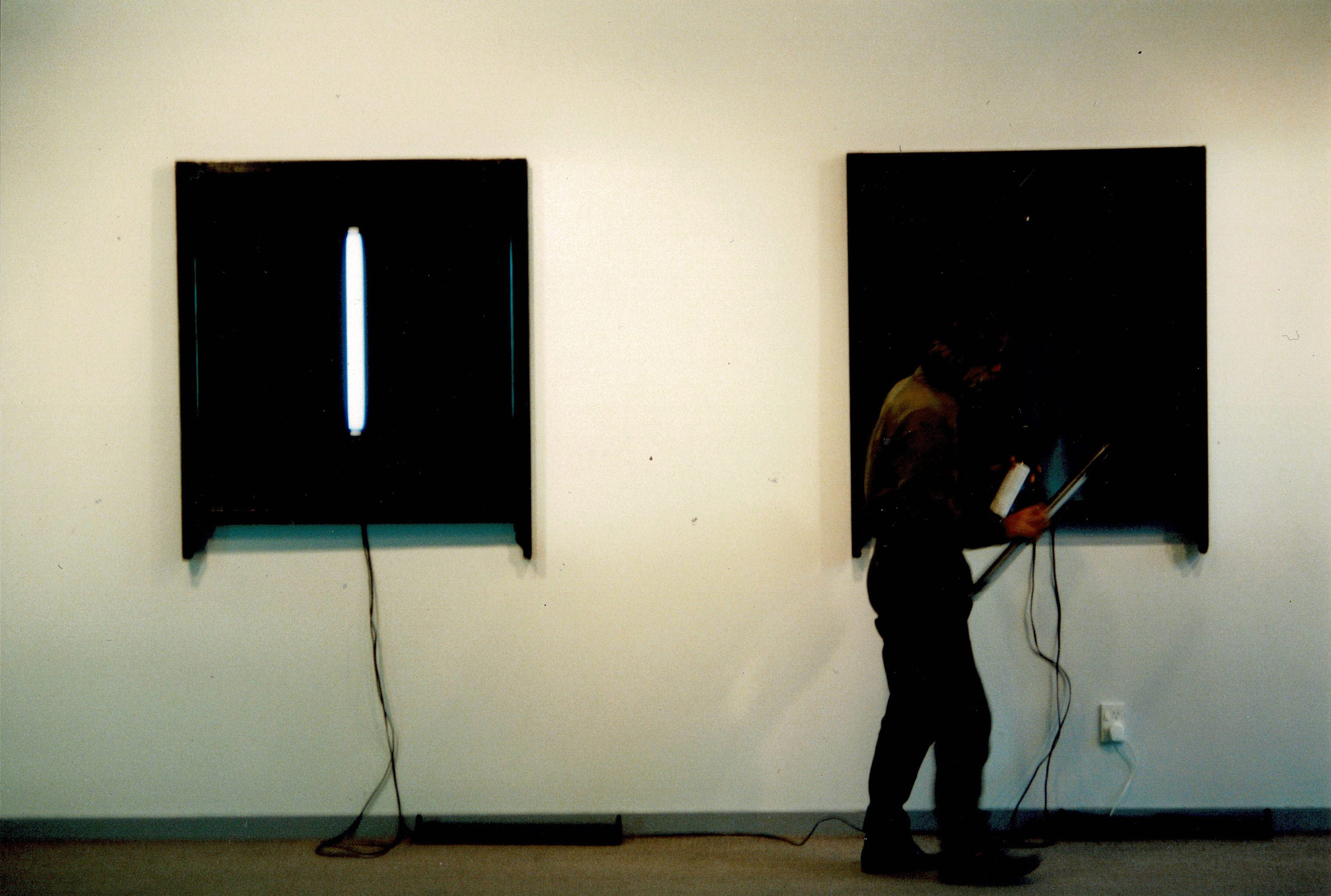 Richard Thompson installing the Post Black series at CFCA (1992)