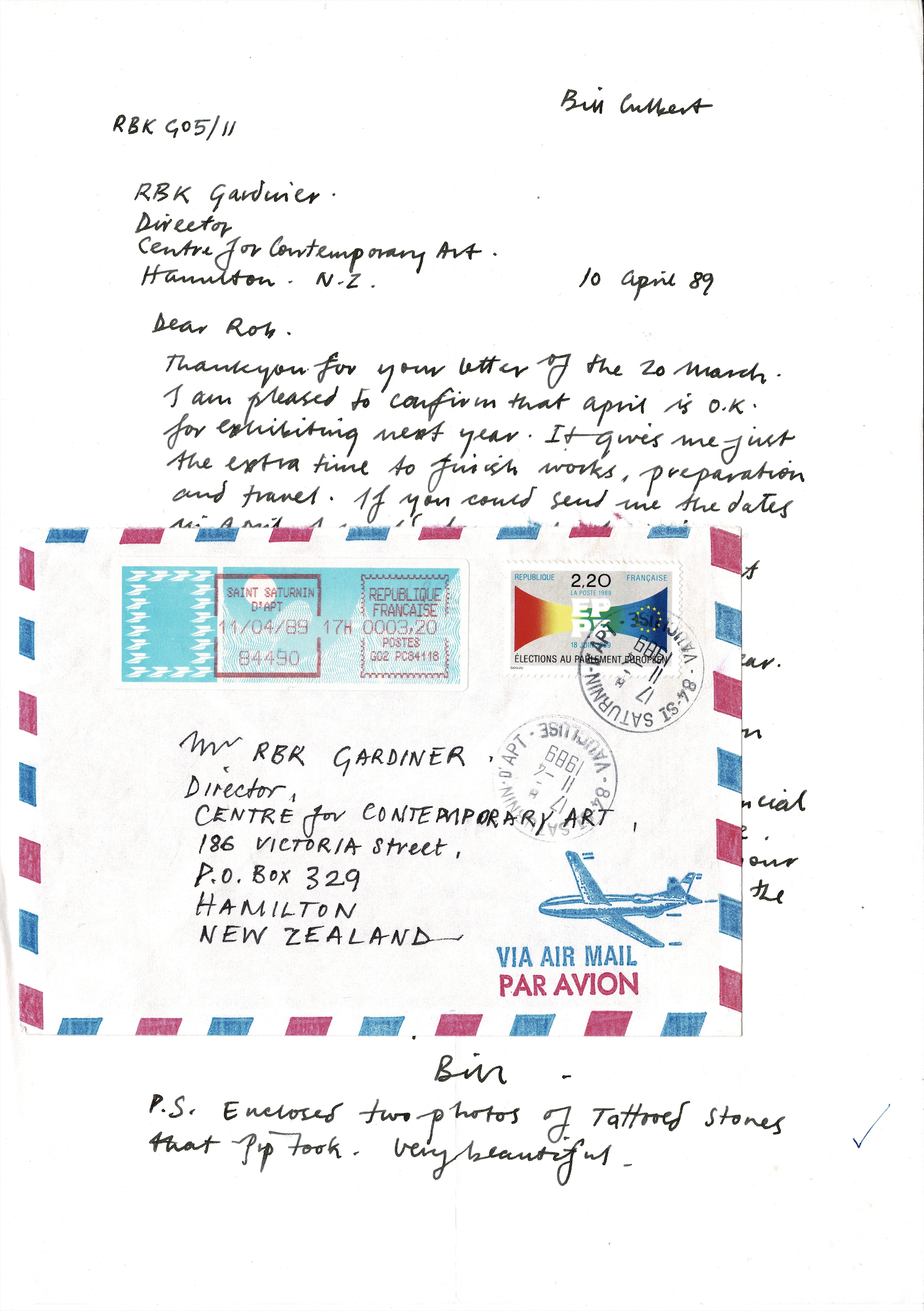 Letter from Bill Culbert to Rob Gardiner 10th April 1989